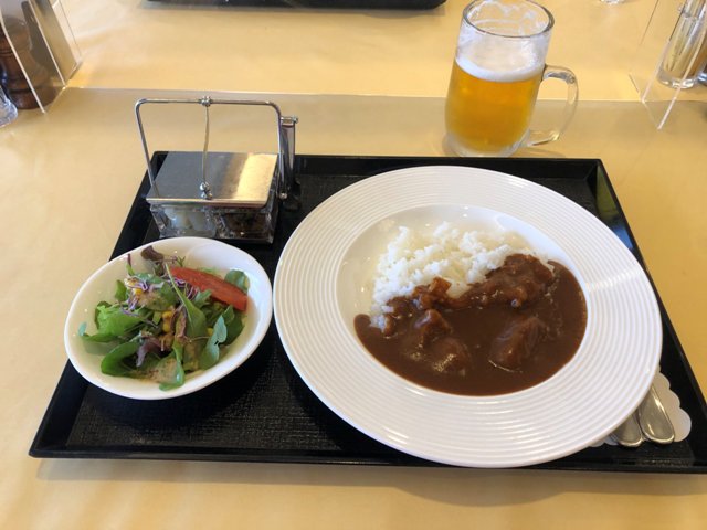 到着後はレストランにてビールで時間を調整してからのスタートです。今日を占うティーショットは左目のフェアウェイ。しかし、2打目は右に外し、3打目はパチンとやってしまいます。しかも寄らずでダボです。続くショートはバンカー2回でダボ。うーん。次はOBパーです。良くなりつつあると思いたい!との願いが通じたのか、ショートのボギーを挟んでパーです。しかし、次のホールは4パット、あれ〜?最後のホールでもOB出して前半終了です。