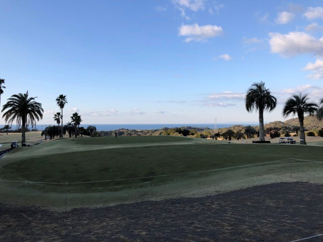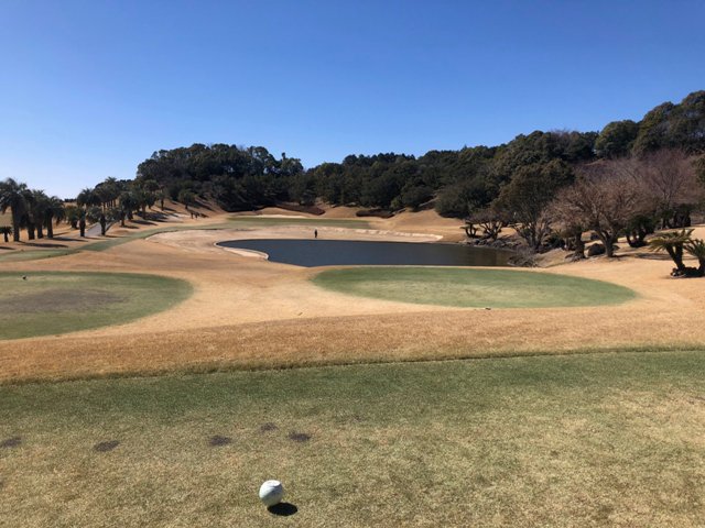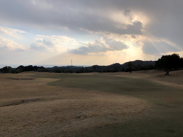 今日は暖流と太平洋コースです。スタートホールはボギーオンできずの3パットと早速の暗雲。ショートはパーでしたが、続くティーショットはダフってそのへん。むーん。前半最後の3つでト・ダ・ボと改善?しつつ前半終了です。お昼休憩は少々長いですね。えーい、お酒は2合お願いします!さらに前田さんからの水割りもいただいて朝控えた分も補給完了です。後半スタートのロングはラフ×3からの4打目をオーバーし、返しも止まらずにこぼれます。ショートのボギーを挟んで3ホール目はパーオン!しかーし4パット、ええー?やってきた7H、残り3つがボギーなら久しぶりの二桁です。ヘナチョコな当たりでしたが後半初のフェアウエイ、距離もありますので池前へ。あわよくばパーもあるよの3打目をボチョン、ついでに3パットも。なんじゃそりゃ。終了後は、早い便で帰る方が多いとのことで急ぎで空港に向かいます。ヤリスに5人乗ってバッグ3本って載るんだ。ちょっと驚き。私はゆっくり便なのでレストランのオーダーストップまで時間をつぶして帰りましょう。