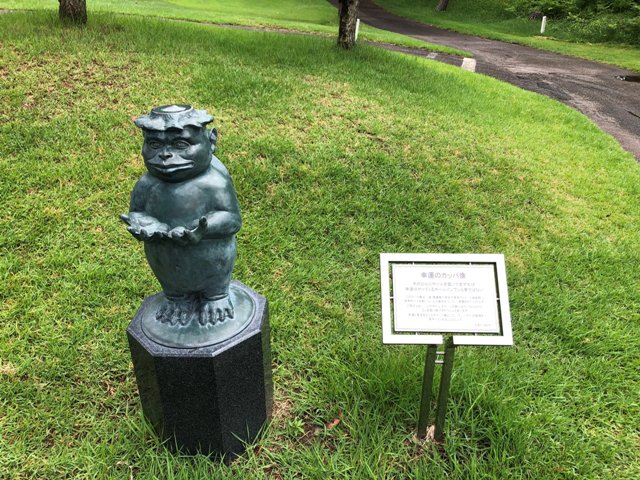 数日前は雨予報だったので心配していましたが曇りのままでいけそうです。スタートホールは左のラフからバンカーへ。早速コースを満喫?しています。その後うまくいったホールも3パットボギーとちぐはぐです。最初のショートには幸運のカッパ像がいました。案内どおりにボールをカッパの手に置いて祈ります。さあこれでホールインワンだ、うらっ。大きく左にいきましてOBでございます。斜面から落ちてこないぐらいってどんだけ曲げたんだか。く~、カッパの奴め~(それは八つ当たりという)。黄桜飲むか(あのカッパのCMって最近みないな)。残念ながら私以外にもホールインワンは出なかった模様です。お昼はアベックカレーという名の麻婆豆腐&カレーです。ご飯に合うもの同士ではありますが他所では見ないメニューですね。スパイス倍増の効果を期待した後半最初のホールはラフラフラフときましたが1パットボギー。効果あったのかも。その後もまあ上出来でしょとやってきた6Hでやっちまいました。キンコンカンとだいぶ苦労しながらようやくグリーンにたどりついても3パット、ぶふー。最終ホールはセカンドもかなり手前でしたが3打目が寄ってくれまして初パーで終了です。ほっ。