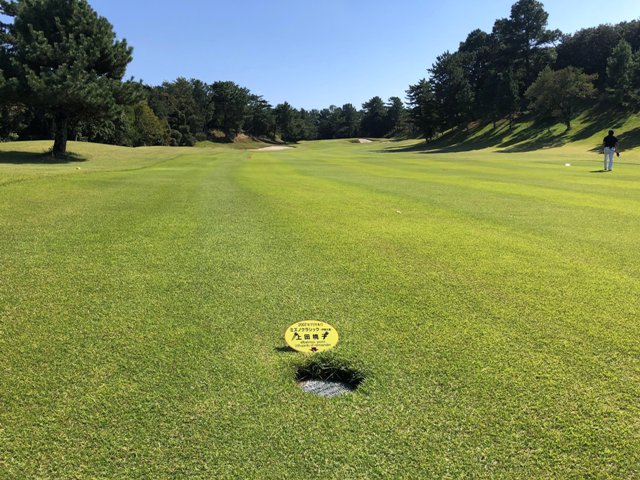 今回は昨晩からの強い雨のせいかキャンセルが多かったようで、前も後ろもいない贅沢ラウンド。しかも、スタート時の小雨も上がってほぼ晴天でのラウンドとなりましたのでラッキーでした。セルフが多いコースのようですがディボットも少なかったですし、距離もあり広々としたフェアウェイ、厳しいバンカーに速い砲台グリーン、女子プロの到達地点や上田桃子のアルバトロスショット地点が示されているとくれば腕自慢の方はお好きなのではないでしょうか。伊勢カン以上に遠くなりますが機会がありましたらどうぞ。