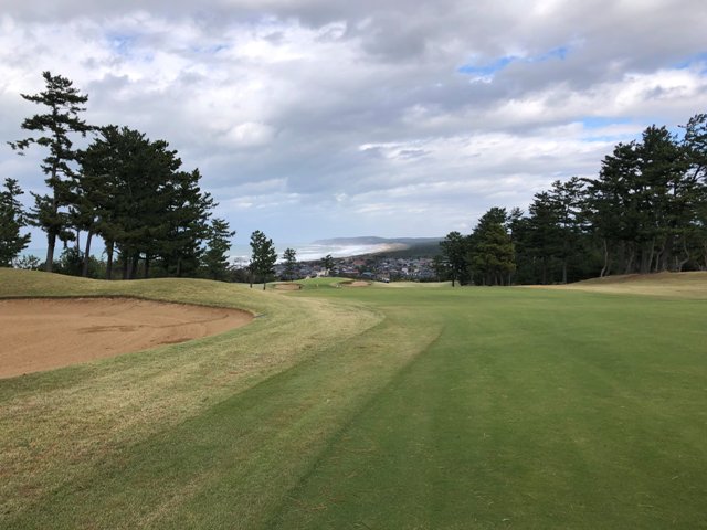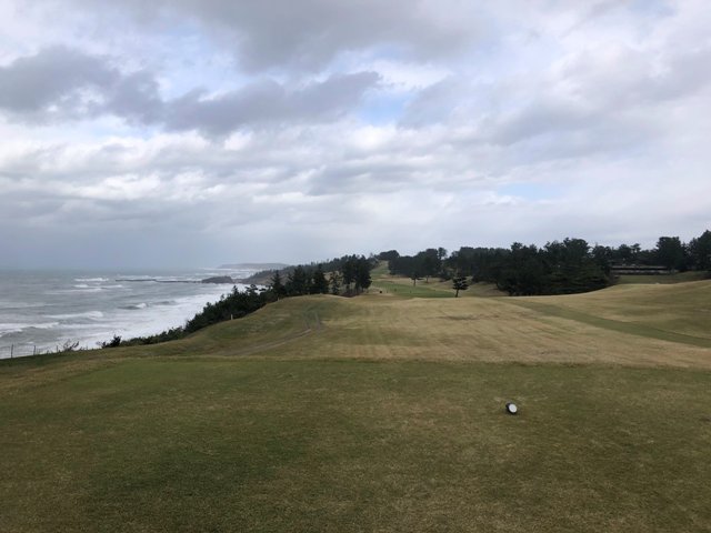 今回は2023年日本女子オープン会場となった芦原にやってきました。よく予約取れましたね。幹事さんと日光CCに感謝です。前回は18Hで悲惨なOB大連発がありましたので、無事にラウンドできると良いのですが。今日は残念ながらの曇り空ですがレストランからドーンと海が見えるのは嬉しいですね。インからのスタート、ティーショットはフェアウェイにいったもののセカンドをバンカーへ、乗せられずのダボスタートです。次のホールではOBと早くも暗雲が漂ってきました。それでもダボもあるけどボギーもあるというペースでなんとかホールを進みます。荒れ気味の日本海を左手に臨む17Hショートはボギー、そして18Hロングにやってきました。リベンジのティーショットはフェアウェイ、よしっ!セカンドもまあまあです。これはパーもあるかもよと調子にのったせいか3打目は左ラフ、アプローチは寄らずのボギーで前半終了でした。OB連発しなかったし良いことにしましょう。