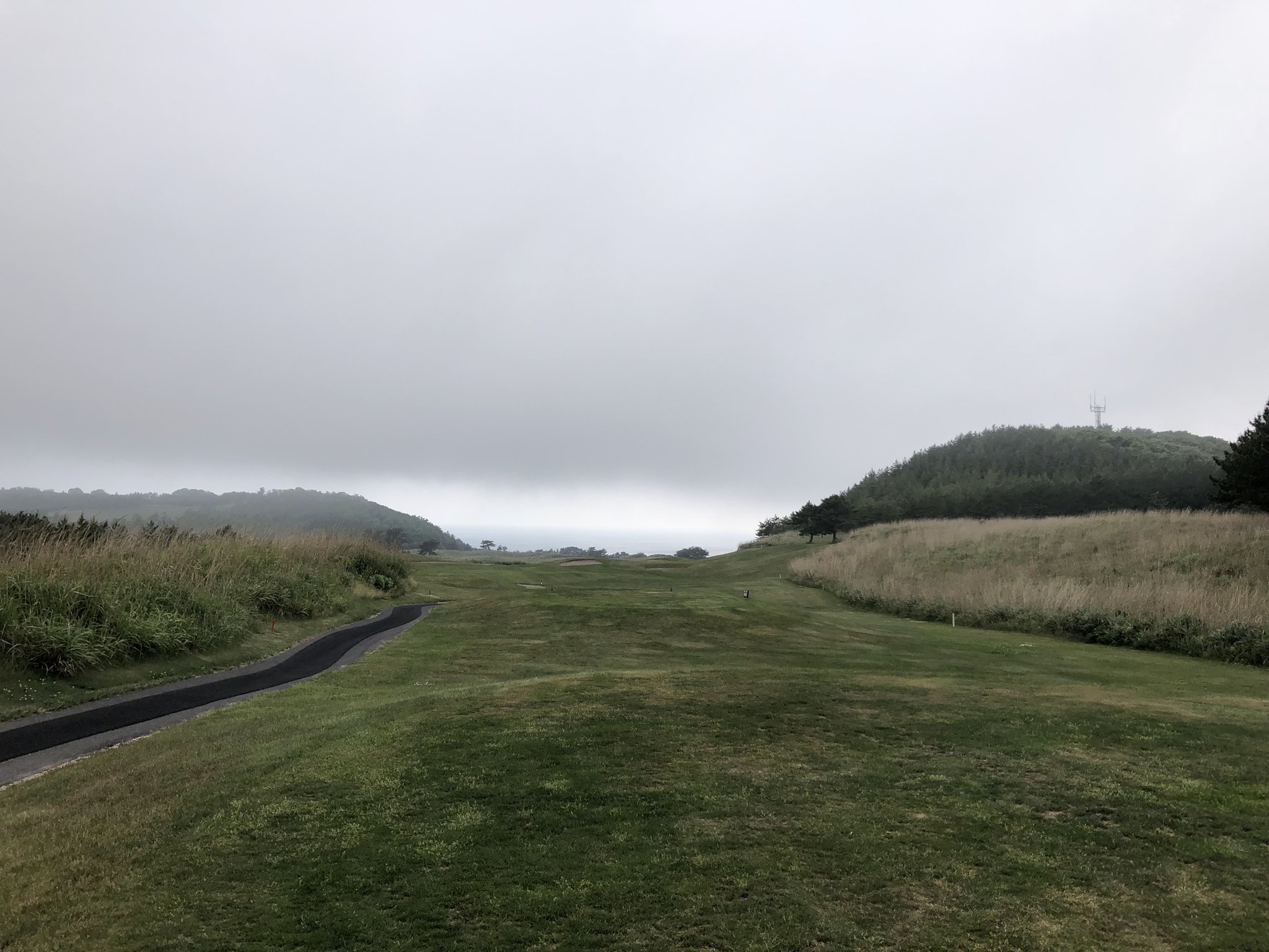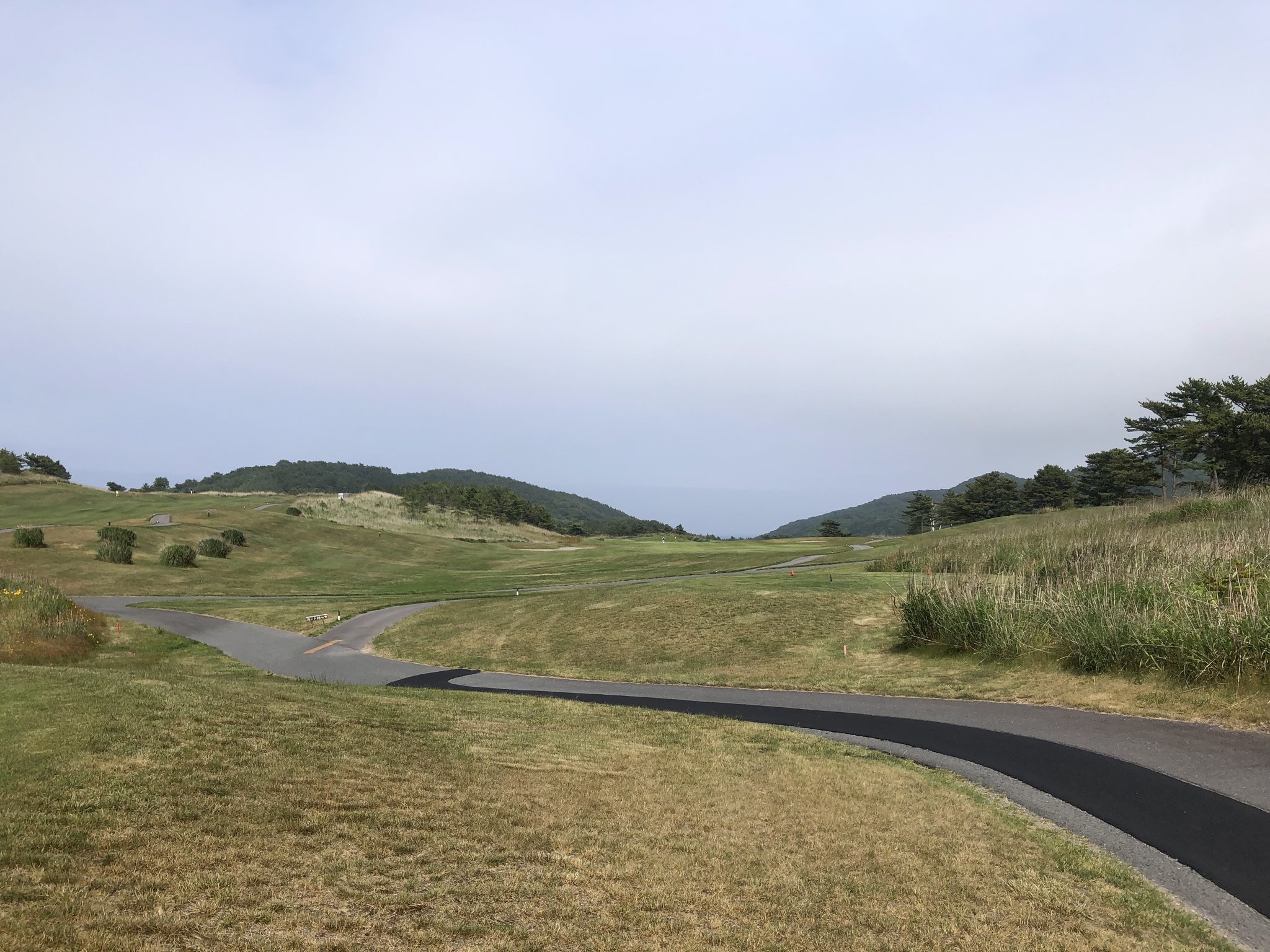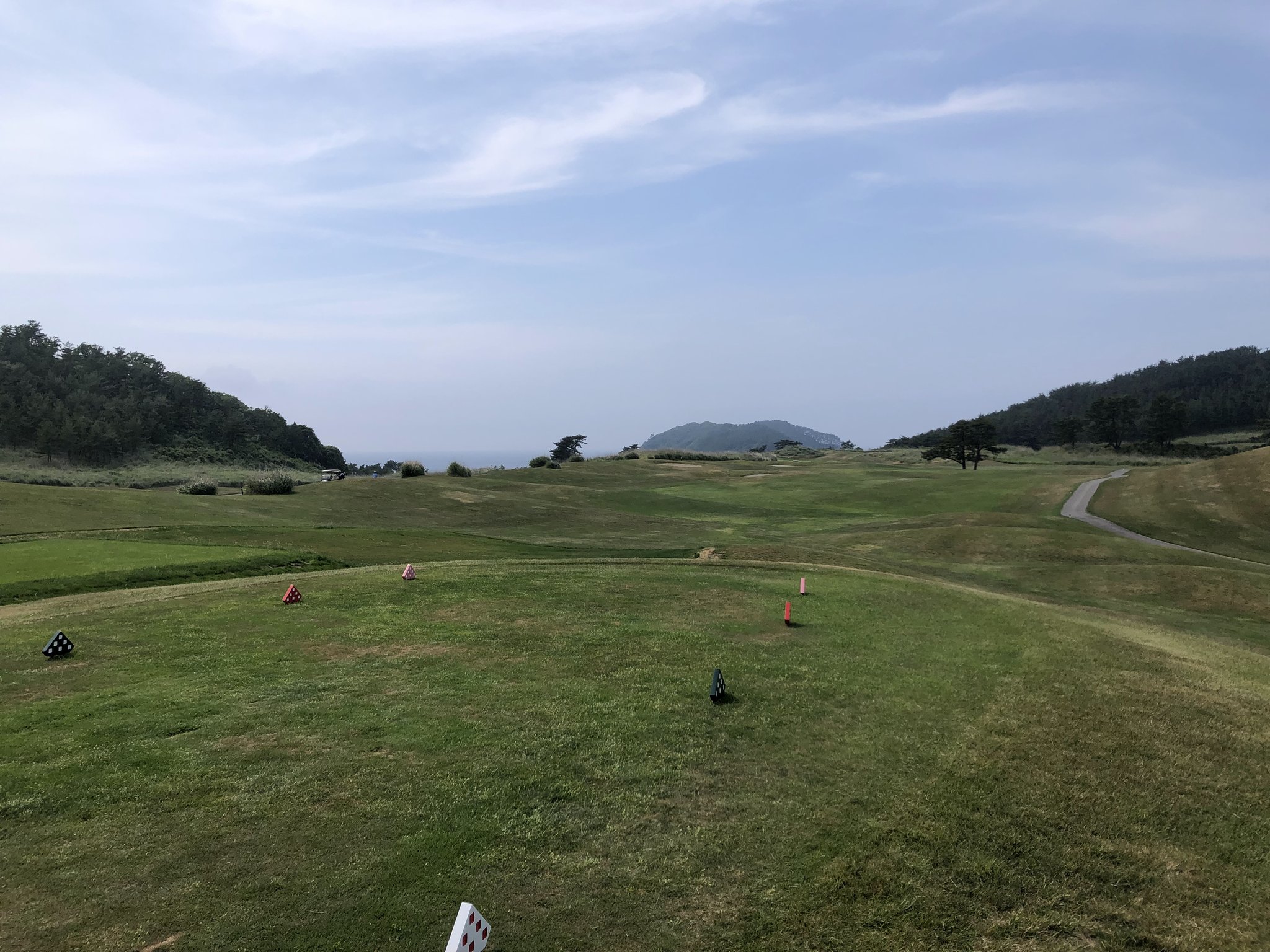 食事を終えたら海沿いの道を走ってコースに到着。今年も夏泊に来ることができました。さあ行くぞのティーショットは右ラフへ。フェアウェイに戻しましたが3打目が左のペナ。続くショートはナイスオンからのナイスじゃない3パット、3ホール目もフェアウェイに行きましたがセカンドバンカーからのホームラン。しかし、今日は早めに4H目にパー(早めもなにも、パーがないまま終了がよくあるよね)。でもその後のロングはトリ。ダボダボにて前半終了。うーん。