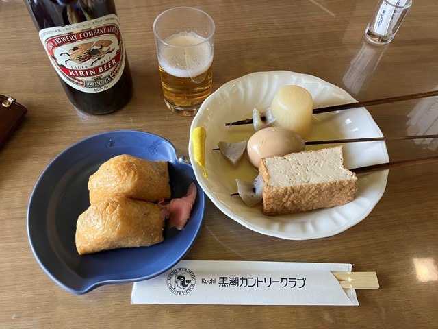 凡人の私は大人しく羽田で待っていると10分遅れますとのアナウンス。最近飛行機の遅れが多い気がします。インバウンド影響か人手不足でしょうか。続いて15分遅れのアナウンス、そして決まったらお知らせしますとのアナウンスに。あらら。高知空港からのワンコインタクシーを予約していたので電話するとキャンセルになりました。待っていてくれるかもなと少し期待したのですが、まあ運転手さんも待つだけでは売上にならないですからね。空港に到着してから普通に客待ちしていたタクシーに乗ってコンビニ経由でホテルに行ってもらいます。運転手さんによるとトーナメントがなくなっちゃうんですよとのこと。土佐カンで開催していた明治安田レディースは今年から夏に東北開催で、黒潮のカシオも別のコースに行ってしまうとのことです。