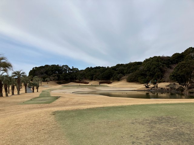 一発目はフェアウェイです。セカンドは引っ掛けて、次も寄らずのボギースタート。続くショートもバンカーに入れましたがボギーです。しかし3ホール目はティーショットをチョロってボギーオンもできずに3パット。あら。そしてやっぱりやりましたOB。続いては池、ショートは再びのバンカー、ロングで今度は左OB。ふー。黒潮亭でおでんとお稲荷さんをいただいてから後半の最初は1パットのおかげのボギースタート。トリさんを挟んでショートで本日初パーです。ここから頑張るはずでしたが、ラフからのセカンドがピッチャーフライ、次もバンカーインと苦労します。その後はボギーが続きましたが、最終ホールでパーオン!しかーしの3パットで終了です。現地のナビが表示していたスコアと今計算したスコアがずれていました。入れ間違えていたかな。どっちにしてもヘナチョコなんですけどね(今年も煩悩108やライオン110との戦いだな、せめてダルメシアン101と戦ってくれ)。