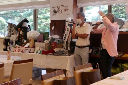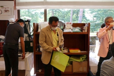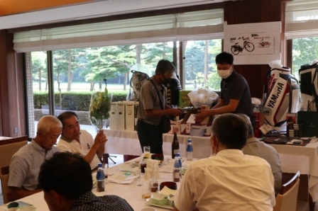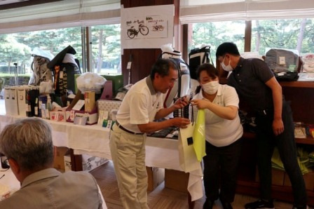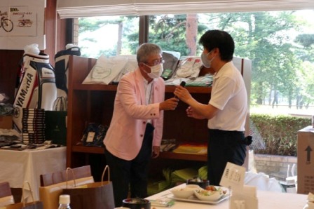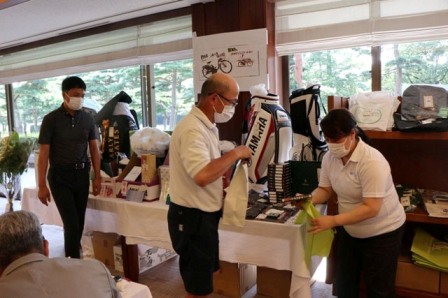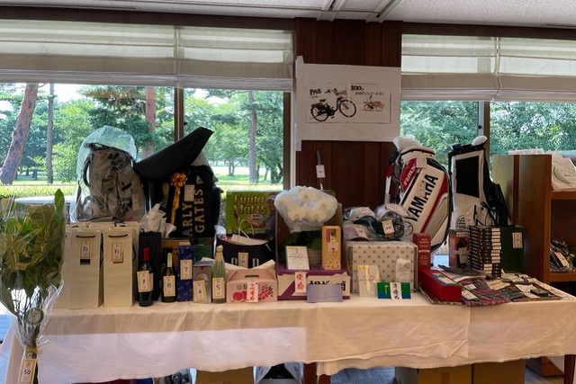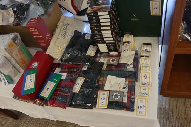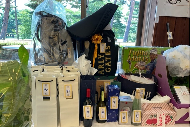 焼酎 魔王(K.T様)、サーモス 真空断熱スポーツボトル(H.H様)、パターマット(K.S様)、HONMA シューズケース・帽子・砂袋(S.M様)、オールドパー(K.K様)、JCB商品券 10,000円(K.H様)、カステラ 賞品ではなく、会社の皆さんで(K.S様)、梅(I.M様)、白バック(M.Y様)、狭山GCのボールマーク2ケ(I.M様)、ノワールワイン(Y.O様)、ウイスキー JAMESON(C隊長様)、フラワーギフト券 5,000円分(まっちゃん様)、祝 10,000円(S.S様)、稲荷屋商店(M.Y様)、千疋屋 詰合せ(Y.S様)、もも 1箱(T.T様)、胡蝶蘭・パキラ、狭山GCへの贈答品として胡蝶蘭(花屋のおっちゃん様)、スコッチウイスキー OLDPERTH(K.O様)、オーダーグローブ券×2枚(T.K様)、キャディバック(パーリィゲイツ)黒(K.T様)、キャディバック(VESSEL)シルバー(K.Y様)、キャディバッグ YAMAHA(マエシン)、キャディバッグ(S.G様)。
