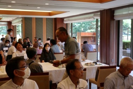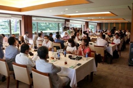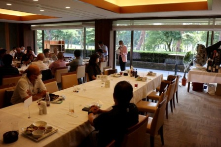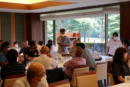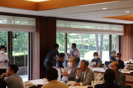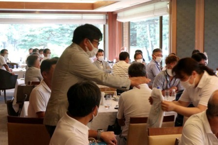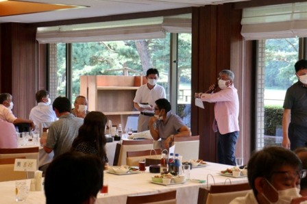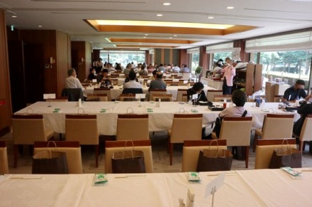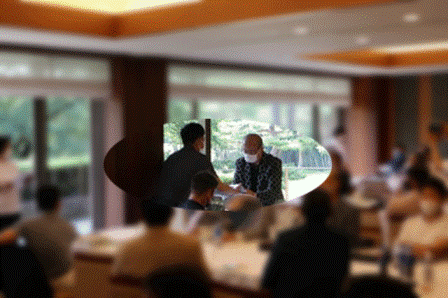 13時35分、お待たせいたしました。パーティー会場の準備が整いましたのでこちらの方へご移動願います。縁の皆様が集まってまいりました・・・。マエシンのトーク開始。弊社ライターさんのご紹介・ご挨拶を中心に縁の皆様のご紹介が続きます。表彰式までゆっくりとお過ごしくださいませ。