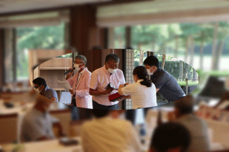 弊社スタッフがお客様全員にお持ち帰り頂く参加賞を各席に並べていると縁のTさんが助っ人で登場。ZAITEN、アルバカレー、1000万ラウンド記念袋・高級ティッシュボックス等を決められた詰め方で次々に袋詰めしていきます。やっと終わったと思いきや、袋詰めの順番が違うものがチラホラ・・・結局、再度袋詰めの順番を確認しながら参加賞を詰め直していると、忘れられてた1000万ラウンド記念メダルを発見。忙しかったのか手際が・・・