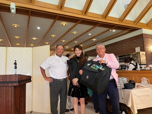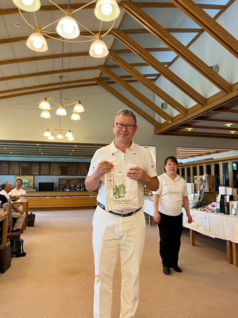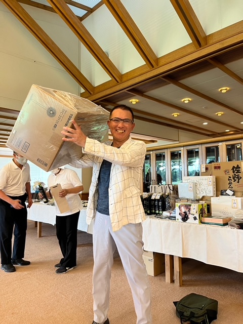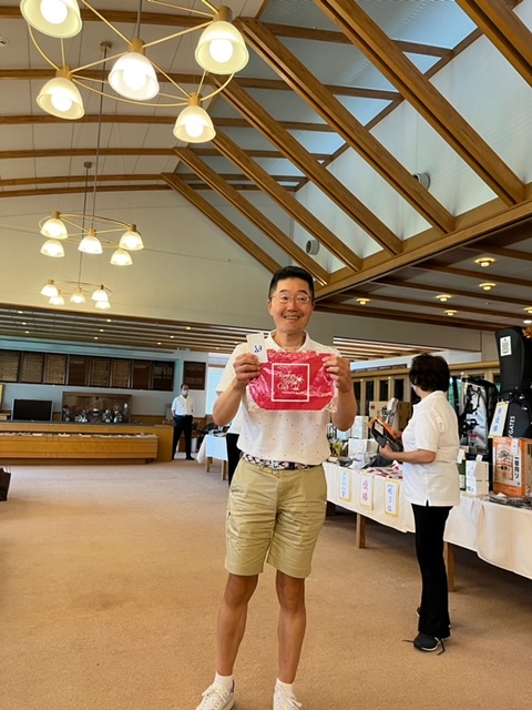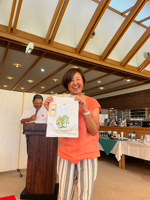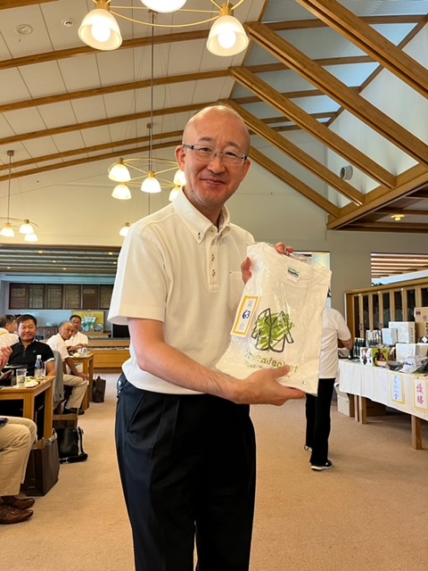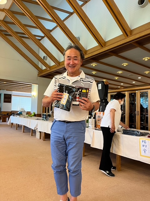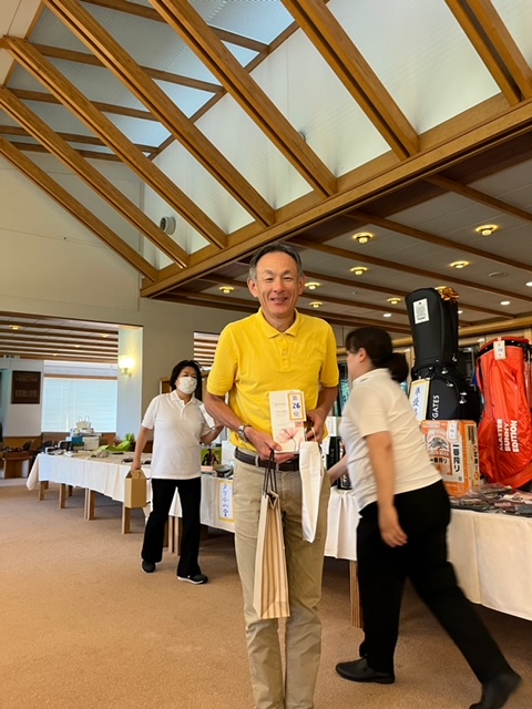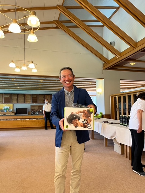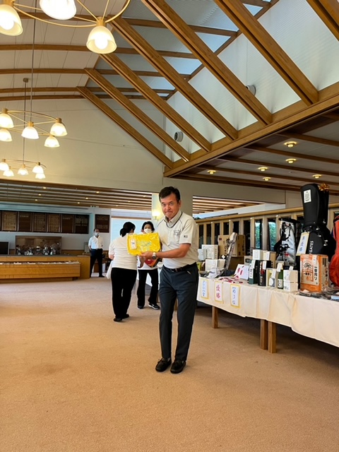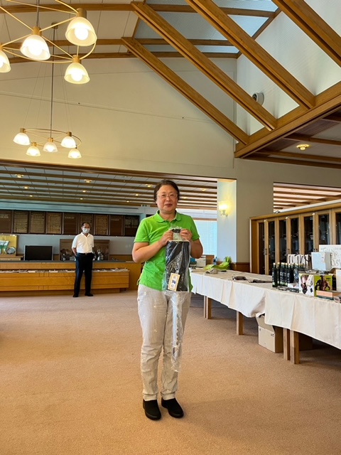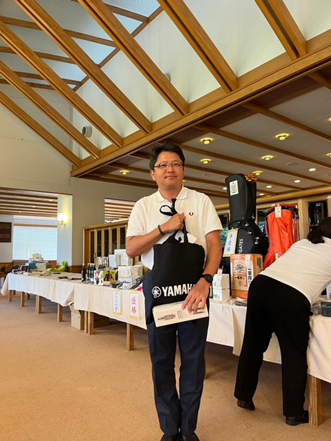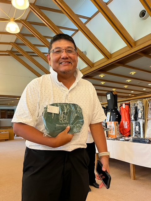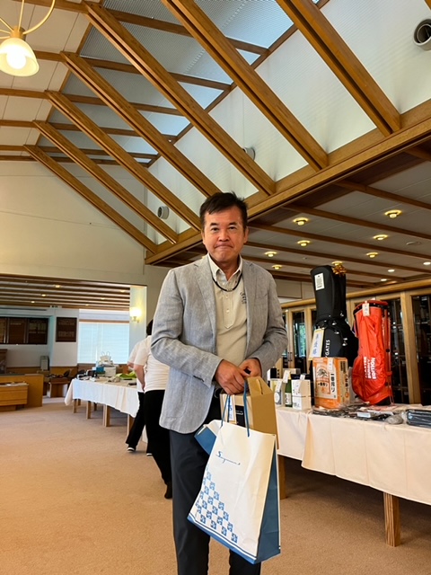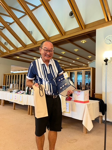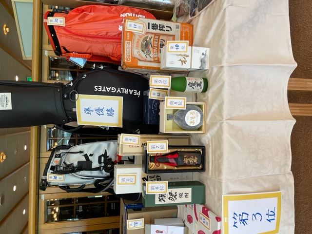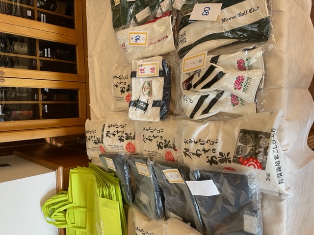 弊社からは、廣野ポーチ・廣野トートバッグ・廣野ドライバーカバー・小樽水筒・日光PGMチャンピオンカップのポロシャツ・マンギラオウッドカバーセット・Lipavltトートバッグ・琉球GCトートバッグ・川奈トートバッグ、TOSHIBAサーキュレーター、那覇GC帽子8個、三好帽子3個、フェニックス帽子2個、米2kg、グリーンジャケットTシャツ