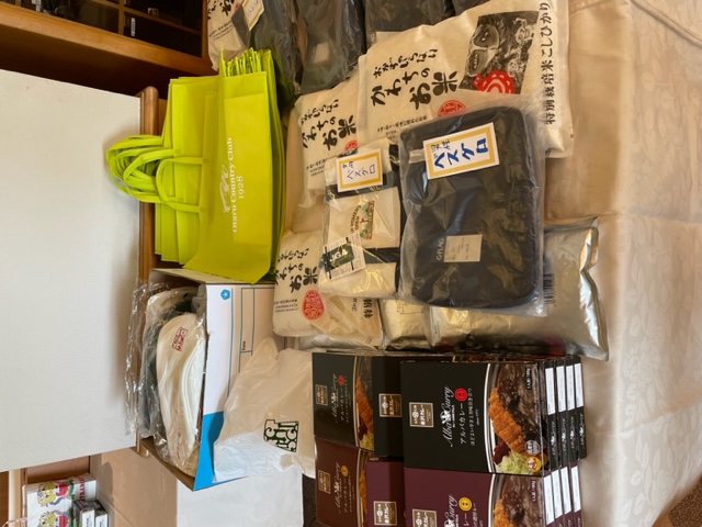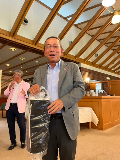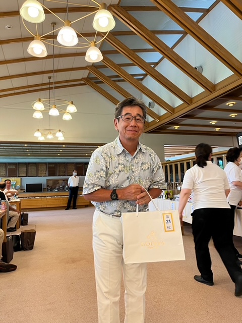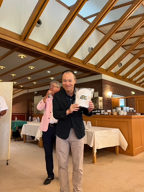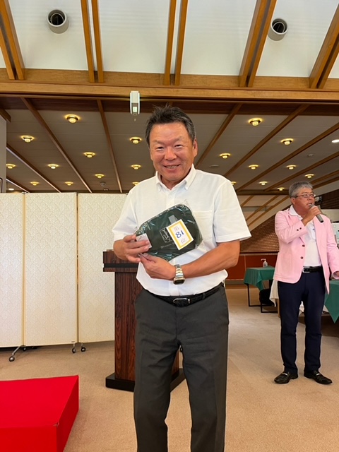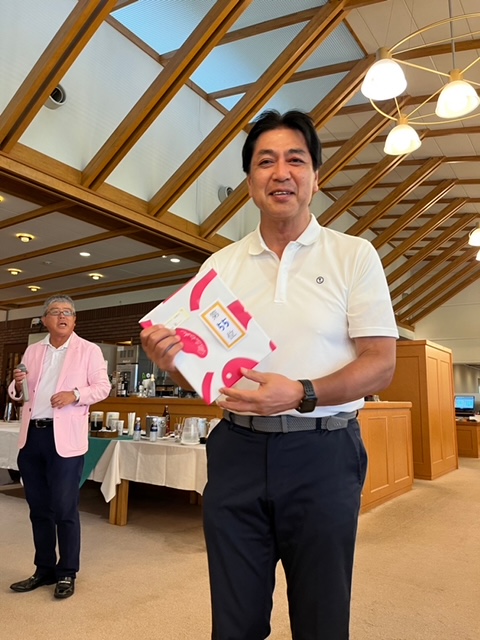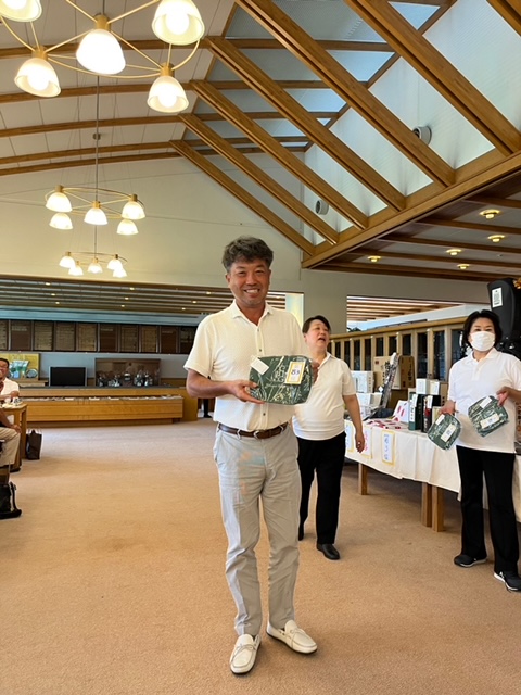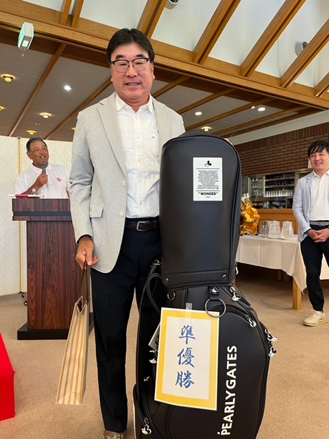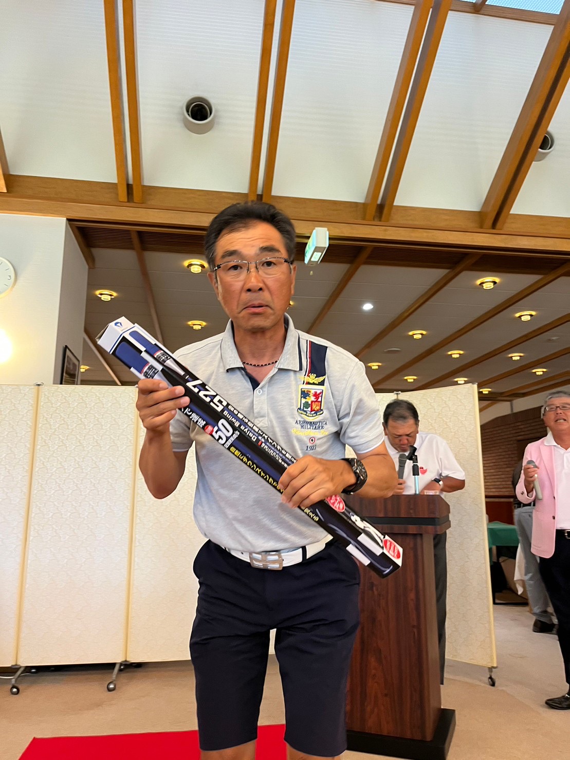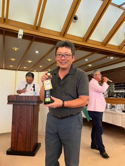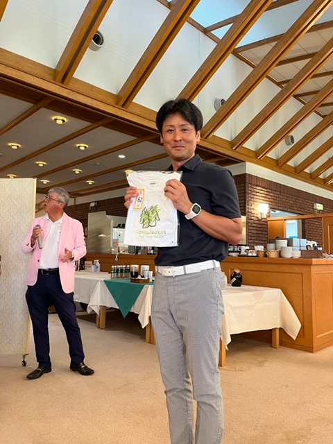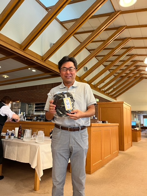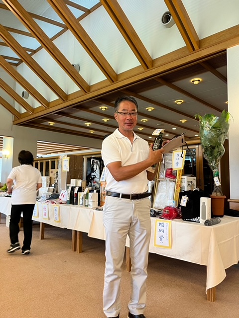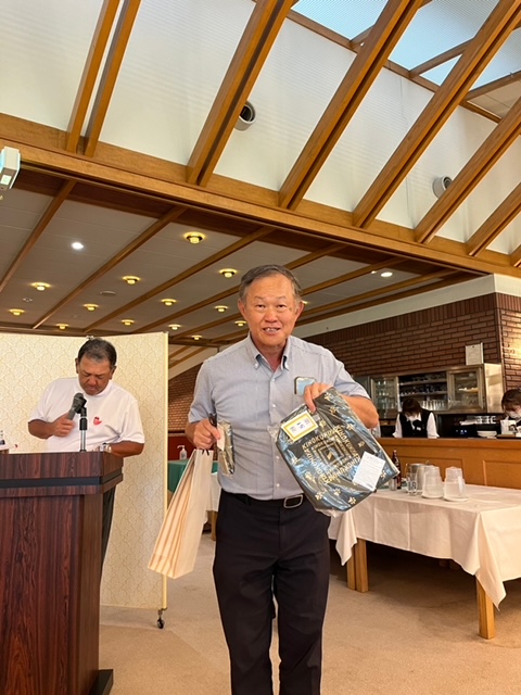 弊社からは、廣野ポーチ・廣野トートバッグ・廣野ドライバーカバー・小樽水筒・日光PGMチャンピオンカップのポロシャツ・マンギラオウッドカバーセット・Lipavltトートバッグ・琉球GCトートバッグ・川奈トートバッグ、TOSHIBAサーキュレーター、那覇GC帽子8個、三好帽子3個、フェニックス帽子2個、米2kg、グリーンジャケットTシャツ