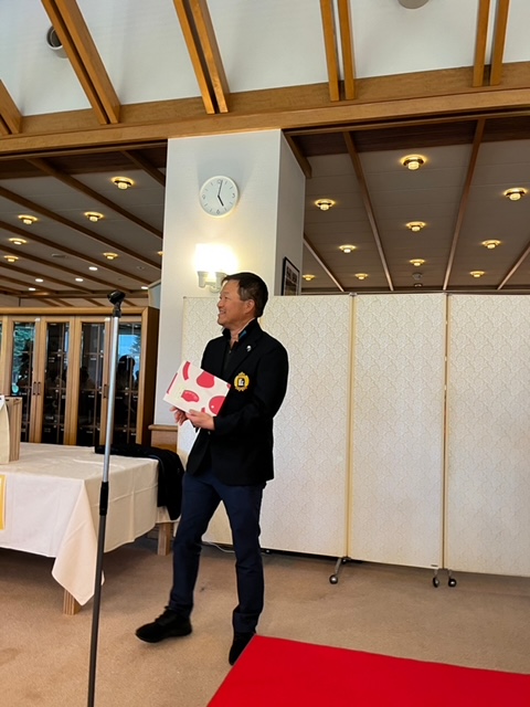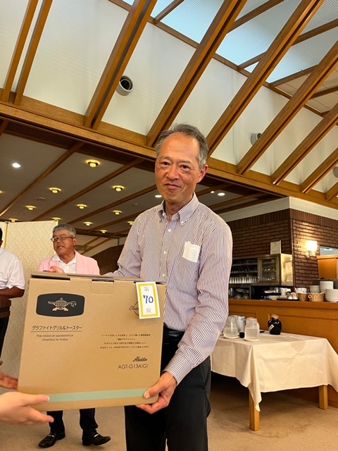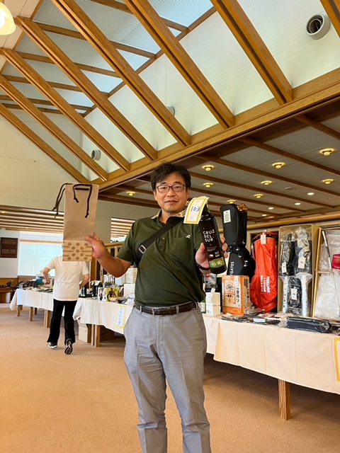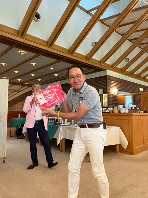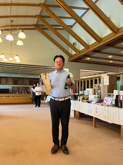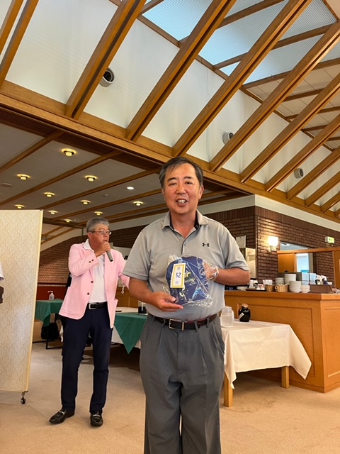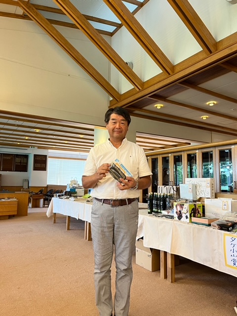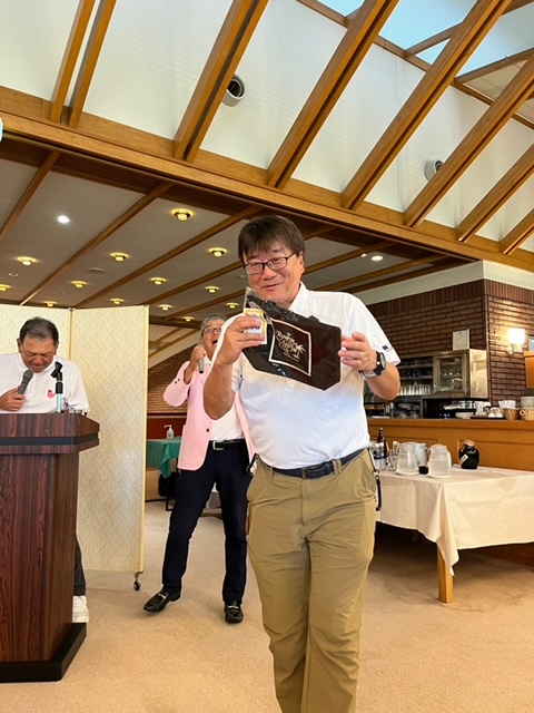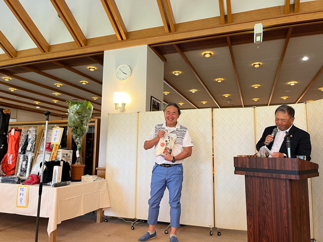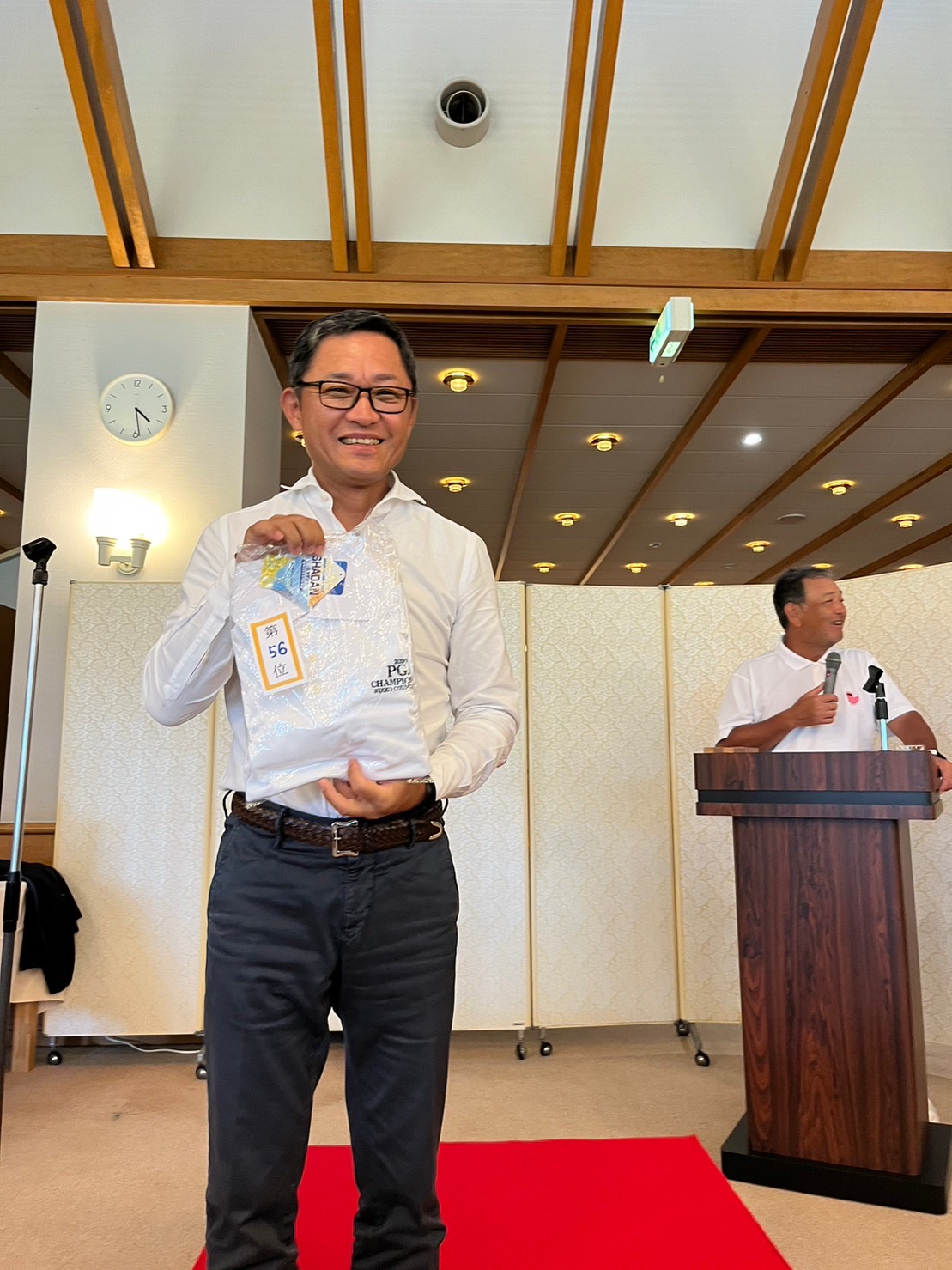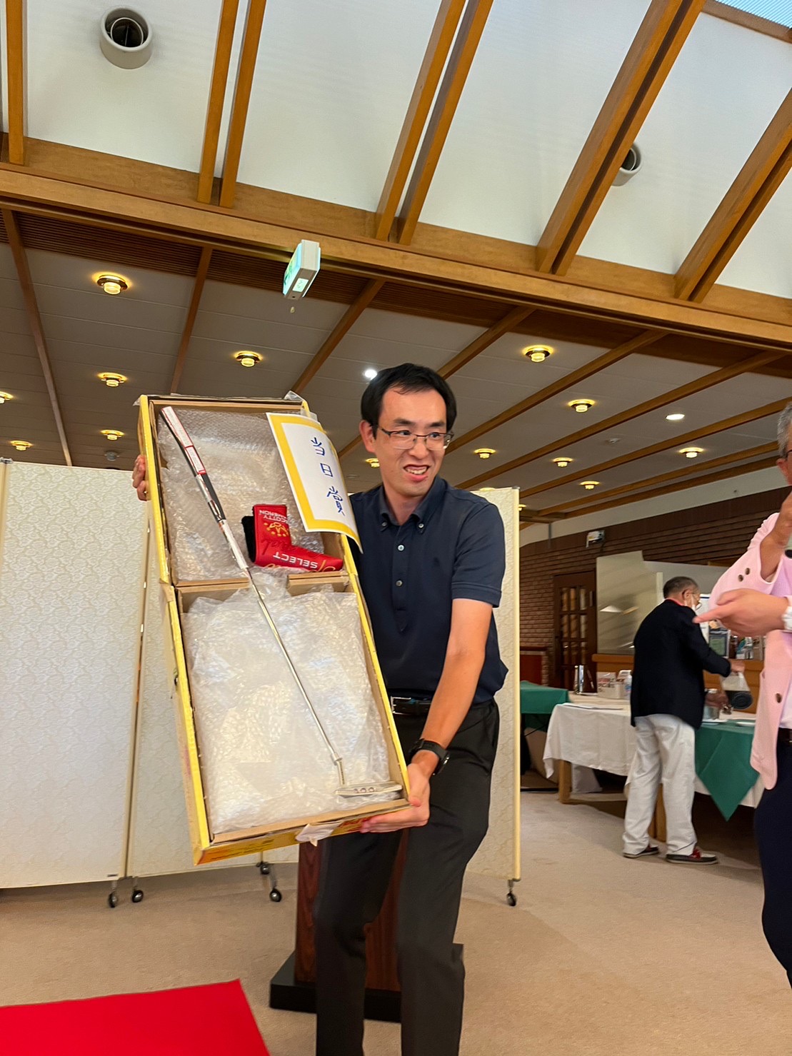 弊社からは、廣野ポーチ・廣野トートバッグ・廣野ドライバーカバー・小樽水筒・日光PGMチャンピオンカップのポロシャツ・マンギラオウッドカバーセット・Lipavltトートバッグ・琉球GCトートバッグ・川奈トートバッグ、TOSHIBAサーキュレーター、那覇GC帽子8個、三好帽子3個、フェニックス帽子2個、米2kg、グリーンジャケットTシャツ