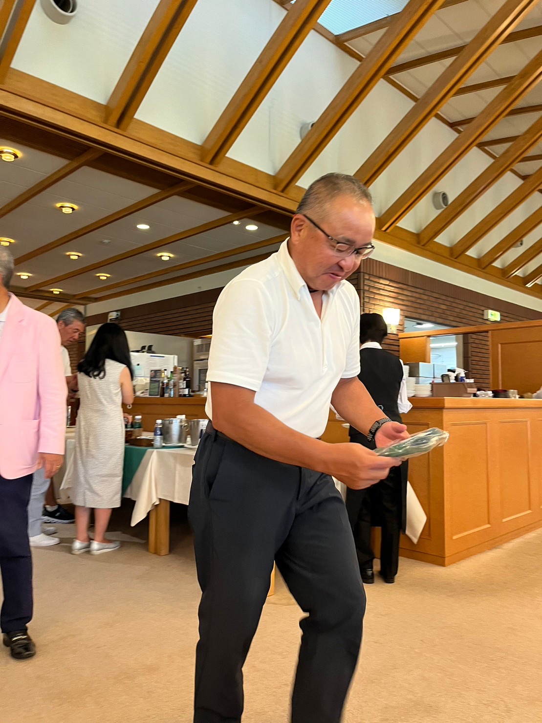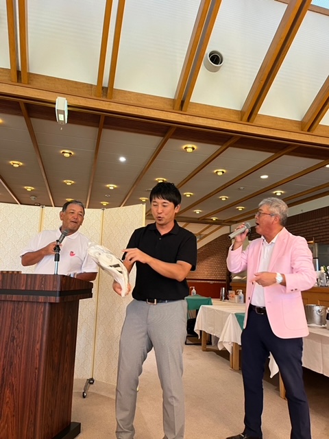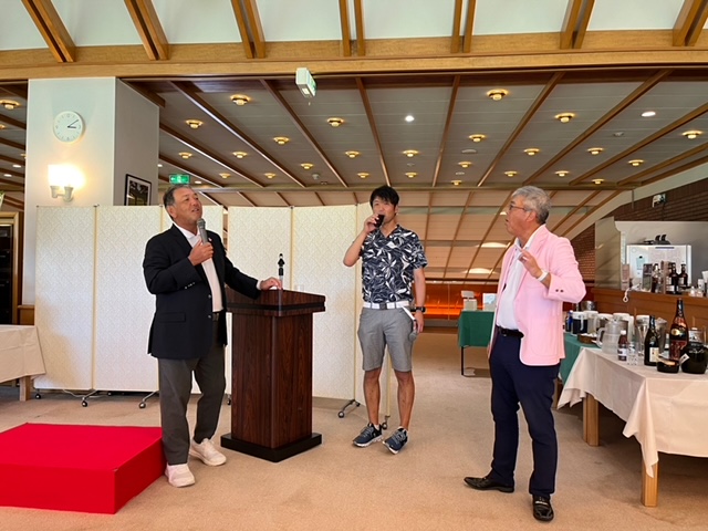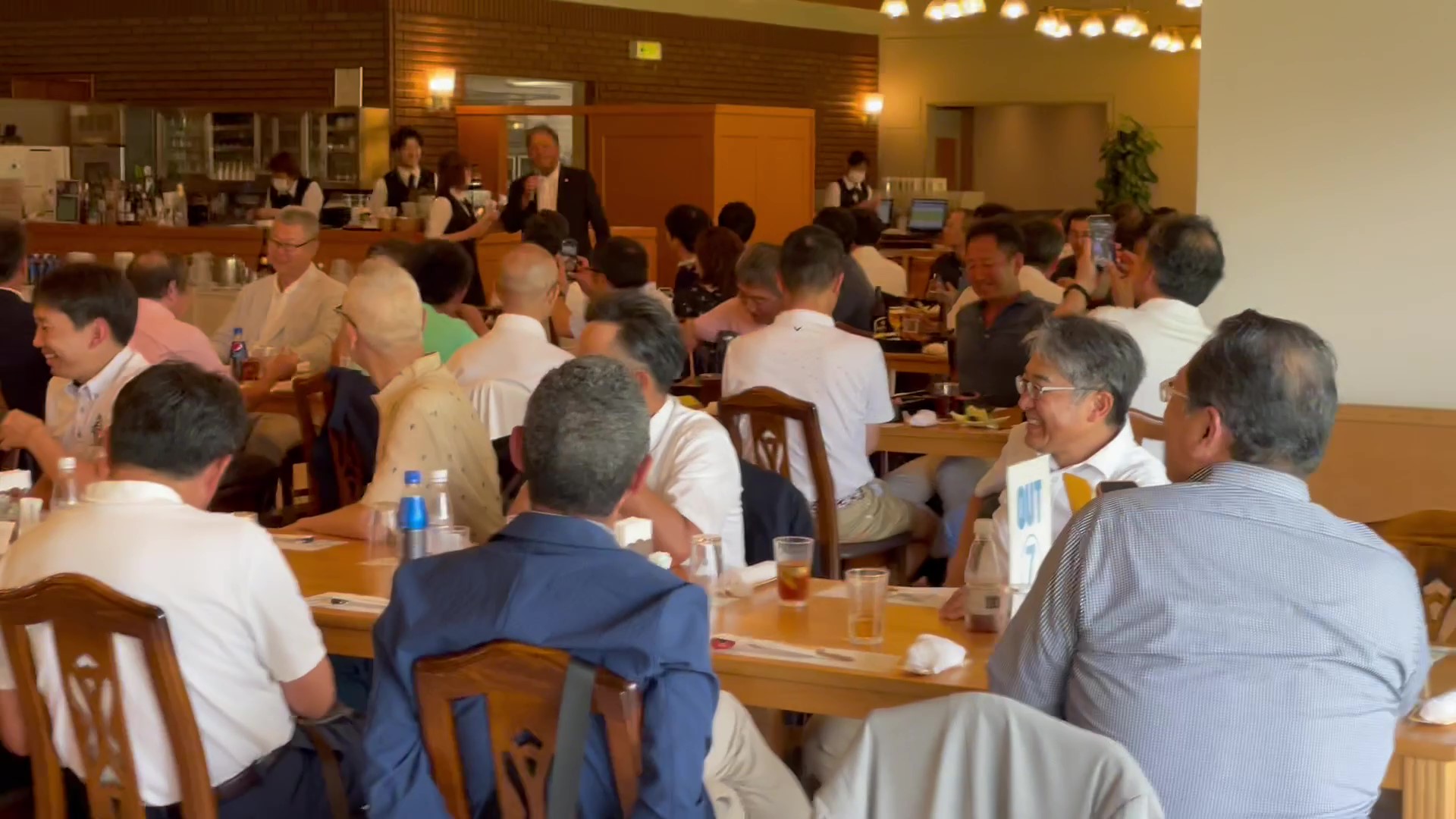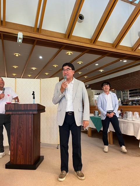 本日は早朝から夕方まで支配人様をはじめ、キャディーさん、ゴルフ場スタッフの皆様には大変お世話になりました。ありがとうございました。またゴルフ場の貸し切りにご協力頂きました支配人様をはじめゴルフ場関係者の皆様、ご協力頂きましてありがとうございました。今後ともよろしくお願いいたします。最後に、お忙しいところを龍ヶ崎カントリー倶楽部までお越し頂きました縁の皆様、本当にありがとうございました。酷暑の中お疲れ様でした。今後とも加賀屋ゴルフをご贔屓の程よろしくお願い申し上げます。
