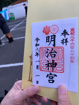 日本最強のパワースポット、明治神宮を参拝と御朱印(令和六年一月一日)。