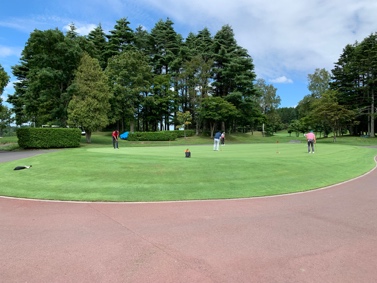 良く転がる練習グリーンで、スピードは10フィート近くありそうですが、本グリーンはどうでしょうか?遅い場合もあり、ですが傾斜がありますので油断はできません。