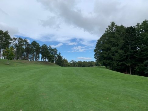 丘の頂点からダウンスロープの広いフェアウェイと先に広がるグリーンの景色は、インコースならではで、変化のある景色にうっとりします。