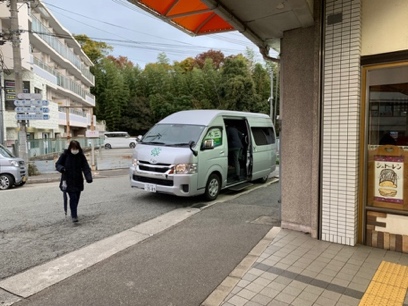 阪急宝塚駅6時28分(阪急宝塚本線急行)→川西能勢口6時41分到着→(同ホームにて能勢電鉄妙見線に乗継)6時49分発→山下駅7時06分到着して鳴尾GCを満喫するため、7時10分発の1番送迎ワゴンに乗ります。到着すると既に駅出口に停車しています。