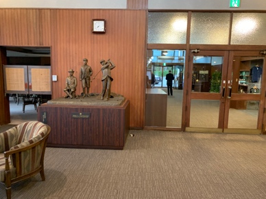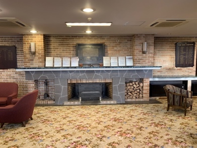 ・クラブハウス・・・簡素な作りですが、重厚な暖炉・調度品の数々が歴史を感じさせ、プレーヤーを温かく迎えてくれる演出となっています。