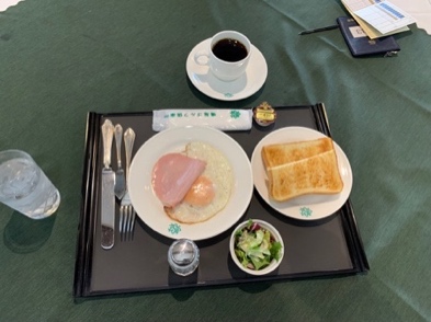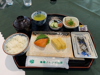 おかずの内容は、シャケの切身・厚焼き卵・味付け海苔・納豆・香の物、関西で納豆のイメージはなかったですが、正統派の和朝食です。