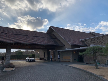 倶楽部ハウス母屋と同じ三角構造の庇屋根が車寄せの上に伸びています。