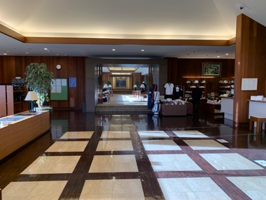 ロビーの床は格子柄模様がデザインされて奥行きを感じます。