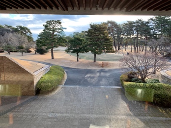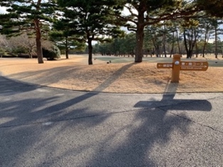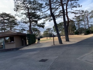 練習場は、倶楽部ハウスから入場門あたりまで戻るので、かなり動線が長いです。