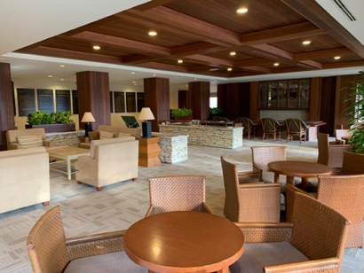 奥に進むとレストランがあり、席数も多く朝からたくさんのプレーヤーで賑わっています。