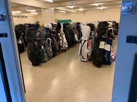 スタート室前にあるキャディバッグ置き場は、とにかく広い空間です。