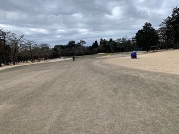逆にこの状況は、冬季間の芝では同様な場面があり、ダフらないようにボールの上半分打ちが有効なのかも知れませんので、この状況にも対応できるように練習したいです。
