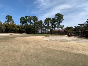 そして、クロスバンカーを上手く避けてフェアウェイを捉えても、セカンドショットはフェアウェイにある1本木のせいで攻略ルートがピン位置や使用グリーンにより変化、花道も狭く難易度が上り面白さが倍増します。