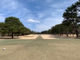 右へ大きくドッグレッグ、まずは1本木左狙いで真っ直ぐなティショットを心がけします。