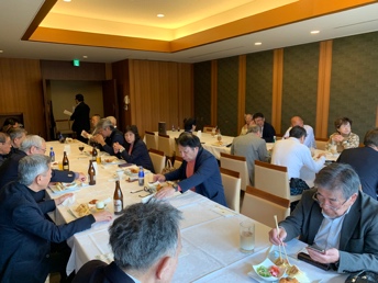 倶楽部支配人の進行で社長の挨拶で始まり、理事の乾杯の発声で交流懇親会がスタート、自己紹介を皮切りに懇親を深めます。