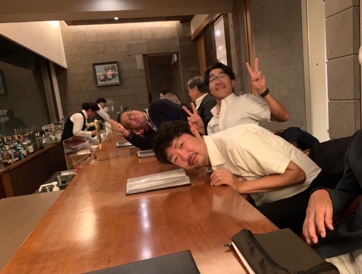 まずは副社長から歓迎の挨拶、レジェンドの乾杯と続き、交流懇親会がスタートします。