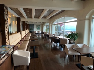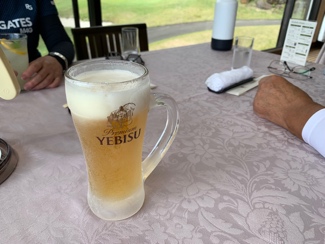 到着早々ルームキーを受け取り、荷物移動はスタッフにサービスをお願いして、我々はラウンジでのホテルオリジナルカクテル・シャンパン・ワイン・新潟限定爽快ニシテの生ビールなどのウェルカムドリンクをいただき、参加メンバーとラウンド後の幸せな一時をロビー越しの夕暮れの景色を眺めながら過ごしました。