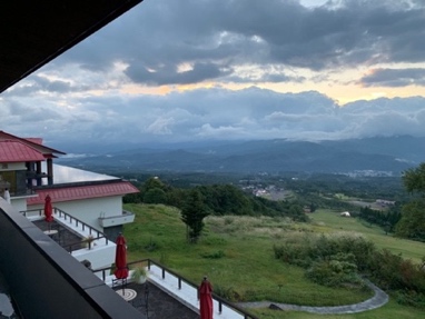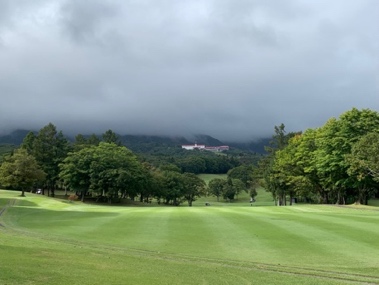 本隊の東京チームと妙高高原駅で合流、送迎車で雨の赤倉ゴルフコース倶楽部ハウスに到着しました。