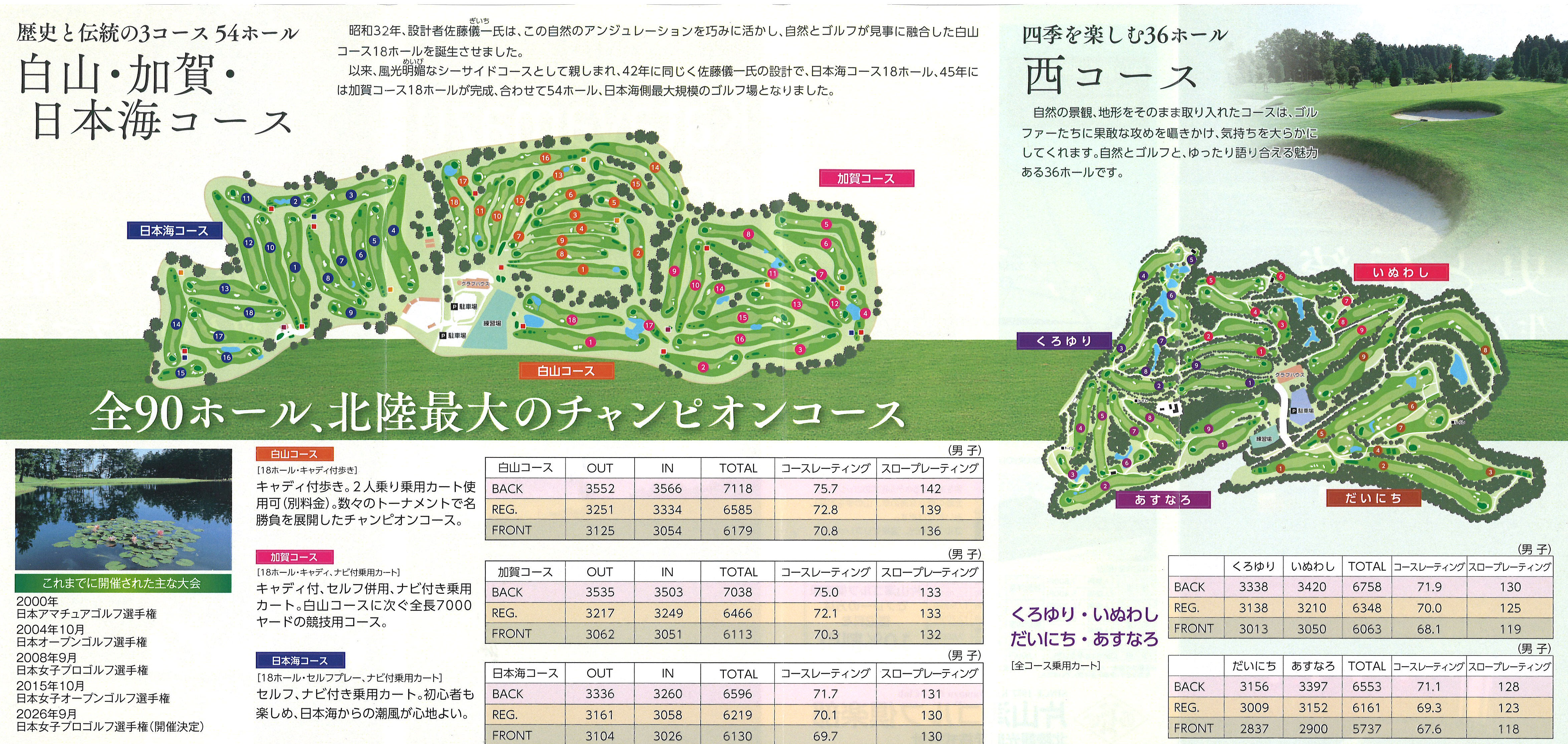 - 片山津ゴルフ倶楽部(白山コース、日本海コース、加賀コース)の3コース54ホールが利用できる