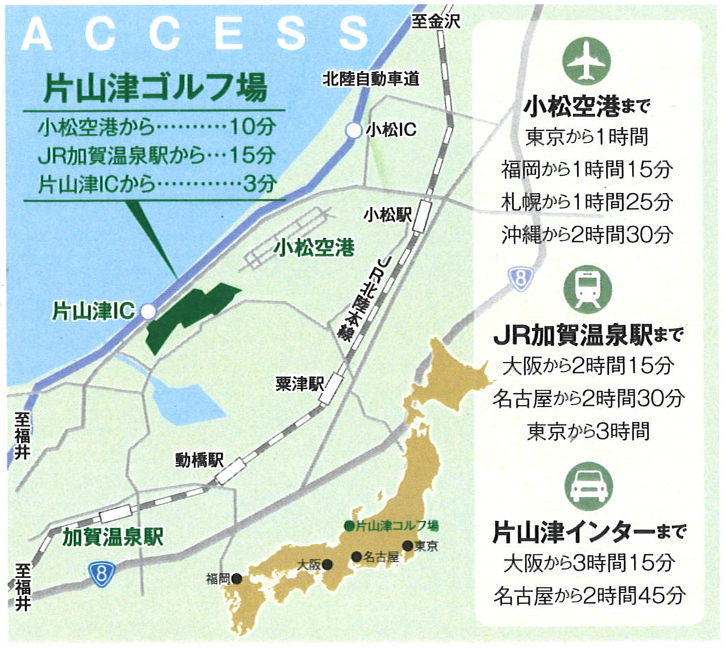 下記コンテンツの文中にある提携ゴルフ場につきましては現在は変更されている場合もございます。各種、最新情報(提携ゴルフ場含む)につきましてはお問合せ頂くか、片山津ゴルフ倶楽部ホームページをご覧ください。