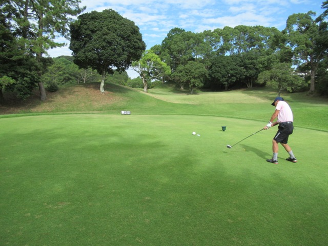 3番136yショートは、9アイアンで9mに1オン。無難にパー。同じくナイス1オンからH.Tさん、S.Kさんも無難にパー。