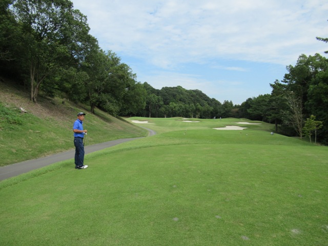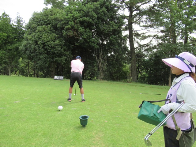 5番318yミドルは、ドライバーはナイス。80yから52度で3mに2オン。沈められず。同じく5mに2オンのH.Tさんも無難にパー。また、ナイスアプ&パターで東京都のM.Tさんがパー。