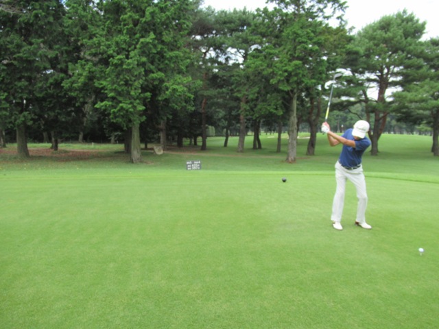 8番173yショートは、7アイアンで打つも竜巻球でバンカーイン。フカフカバンカーからなんとか1ピンへ。今度はパターが決まってパー奪取。しっかり手前10mに1オンしていたK.Nさんが無難にパー。