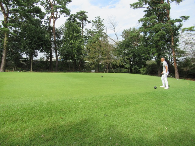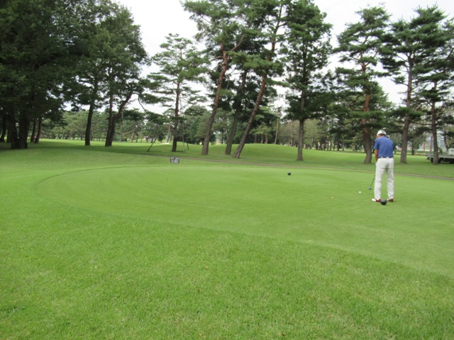 2番413yミドルは、ドライバーはナイスフェードでフェアウェイへ。残り185yアゲンストを4アイアンで完璧球。4mに2オン。が、入らず。残念パー。素晴らしい3打目で1mに3オンのM.Hさんがナイスパー奪取。