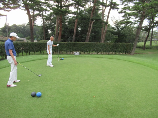 9番420yミドルは、ドライバーは左ラフへ。25度のuでなんとかグリーン左へ。難しい位置からでしたが、1クッションで1.5mに3オン。沈めてナイスパー。同じく1mに3オンのM.Hさんが沈めてナイスパー。