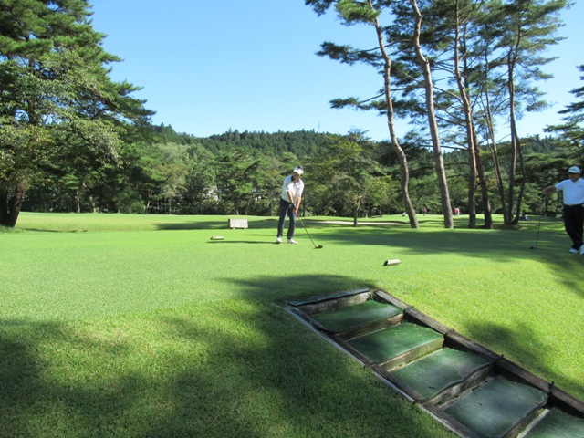 12番215yショートは、3uで打つも右のバンカーイン。寄らず入らず。素晴らしいアプ&パターでK.Kさんがパーでベスト獲得。