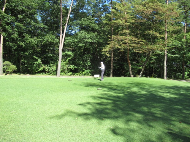 8番210yショートは、4アイアンで打つもカラー手前へ。PWでの転がしはカップに当たるも20センチオーバー。残念パー。このホールはK.KさんもH.Tさんもナイスアプからパー。