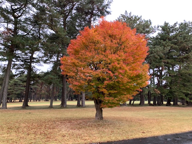 11番398y左ドッグのミドルは、ドライバーは竜巻球。林から6アイアンで脱出。3打目を7アイアンで打つもショボイ球。寄らず入らずダボ。イーブン。