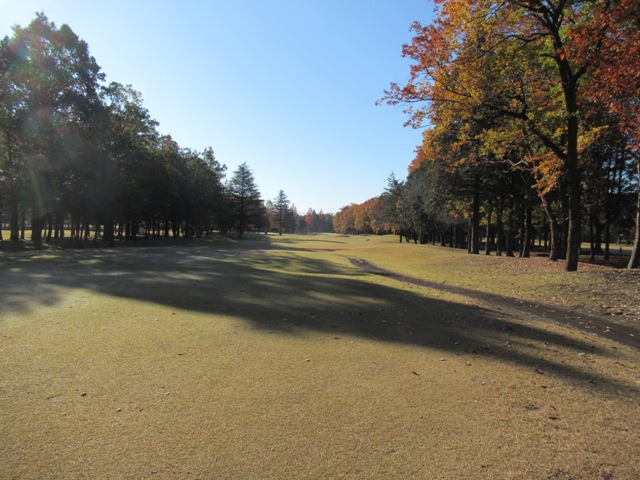 12番394yミドルは、ドライバーはまずまずも左のクロスバンカーイン。PWで打つも竜巻球。暫定球を打つ。ピン手前にとりあえずオン。捜索したが落ち葉に隠れてボールは発見できず。ピン手前5mを放り込めずダボ。お三方は無難にパー。2アップ。