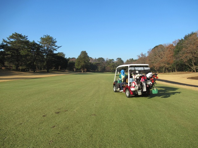 連日の中山の感想・・・・昨日の雨模様でもカートはフェアウェイを走行。今日の快晴もフェアウェイを走行。今は12月なんですがね~。しかし、中山の芝は凄いです。ホント、凄い。
