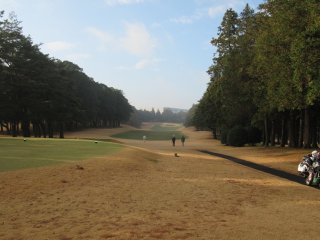 5番361yミドルは、ドライバーは左ラフへ。残り120yからPWで手前8mに2オン。キャディKさんの囁き戦術でどショート。も、なんとか根性パー。ホッ。ショートサイド3mからY.Tさんが残念パー。素晴らしいアプからJ.Mさんがパー。このホールの道中で40歳代のお二人のお仕事のことを少し伺う。そうか、はいってるか。。。はいってるっていうと。。。頭がグルグル廻りだした。