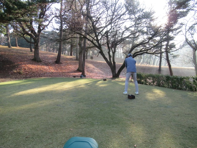 6番163yショートは、7アイアンで打つもショート。簡単なアプをまた2.5mオーバー。が、これもナイスパットでパー奪取。イエーイ。同じくナイスアプ&パターでJ.MさんとS.Oさんもパー。