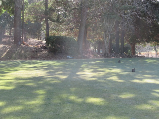 2番373yミドルは、ドライバーは竜巻球。木に当たり右に跳ねる。残り175yを6アイアンで打つもショート。簡単なアプを3mオーバー。入らずボギー。林入り口から素晴らしいドローで見事2オンさせたY.Tさんがこれまた無難にパー。ナイスアプのS.Oさんもパー奪取。