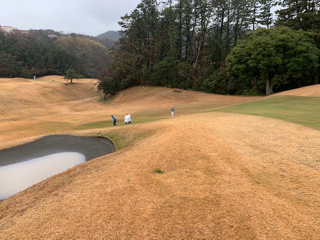 2番397yミドルは、ドライバーは逆風の中、なんとかフェアウェイへ。セカンドの3uが超竜巻球。3打目でも乗らずも、なんとかボギー。