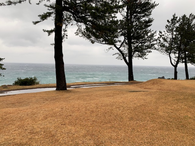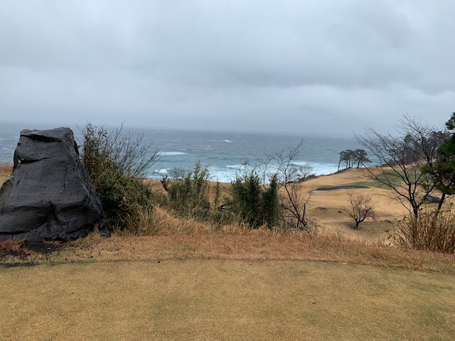 川奈・富士コースの感想・・・・やはり素晴らしいの一言です。特にインコースの眺めが最高です。川奈お初のJ.Kさんは世界でも指折りのスコットランドや北アイルランドやイングランドのゴルフ場巡り者であらせられますが、日本にもキングスバーンズのようなコースがあったんだ!!と感嘆されていました。で、今日の荒々しい波はここ川奈の凄さを一段と引き立てるものとなりました。日本で一番本場スコットランドを彷彿させるコースは、まさしく川奈であります。で、この荒天で笑顔を絶やさず接してくれたキャディのSさんに敬意を表すともに大感謝を申し上げます。川奈・富士でダメなところを申し上げるとしたら、水はけが良くない点とレストランメニューがとても高いということだけでしょう。